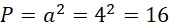 Z podanego rysunku, możemy odczytać, że długość boku kwadratu wynosi 4 jednostki. Zatem korzystając ze wzoru na pole kwadratu ,