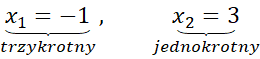 Przenieś wszystkie wartości na jedną stronę równania i przedstaw je w najprostszej postaci. Skorzystaj z tego, że powstałe równanie jest zerem, gdy któryś z nawiasów wyzeruje się i na tej podstawie wyznacz rozwiązanie każdego z równań w powstałych nawiasach. Na koniec wyznacz krotność każdego z nich.