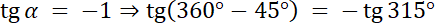 tg 315°⇒ α = 315°, dla α ⋲ (270°, 360°)