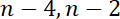 Skoro n jest parzysta, dwie poprzedzające liczby parzyste to n-4 i n-2. Pamiętaj o kolejności: dwie kolejne parzyste liczby to 4 i 6, a nie 6 i 4.