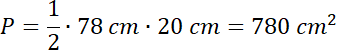 Aby policzyć obwód, dodaj do siebie długości wszystkich boków. Aby policzyć pole, podstaw dane do wzoru na pole trójkąta . Wykorzystaj podstawę o długości 78 cm i opadającą na nią wysokość 20 cm.