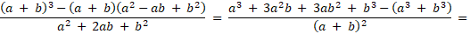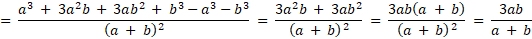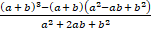 Wyrażenie upraszczamy stosując WSM: (a + b)3 = a3+ 3a2b + 3ab2 + b3 oraz (a + b)(a2 – ab + b2) = a3 + b3, a także a2 + 2ab + b2 = (a + b)2. Dziedzinę (D) wyznaczamy, wiedząc, że wyrażenie w mianowniku nie może być równe zeru.
