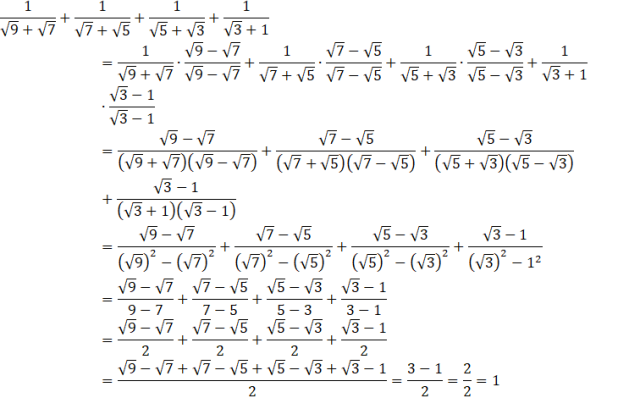 Aby pozbyć się niewymierności z mianowników musisz skorzystać z różnicy kwadratów a2 – b2 = (a – b)(a + b). Musisz przemnożyć licznik i mianownik przez mianownik ułamka ze zmienionym znakiem między liczbami. Aby otrzymać wynik musisz następnie zredukować wyrazy podobne w liczniku.