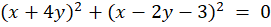W tym zadaniu musisz zauważyć, że kwadrat dowolnej liczby rzeczywistej jest nieujemny, zatem aby suma kwadratów dawała 0 oba kwadraty muszą być równe 0.