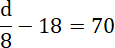 Zauważ, liczbę d pomniejszono 8 razy, a od wyniku odjęto 18, co dało 70. Wartość w pierwszym polu (na początku strzałki) to liczba, na które wykonujemy działanie, wartość przy strzałkach to działania kolejno wykonywane na liczbach (strzałka łącząca pierwsze i drugie pole, wykonuje działanie na pierwszej liczbie, a strzałka łącząca drugie i trzecie pole wykonuje działanie na liczbie ze środkowego pola, czyli na wyniku poprzedniego działania), a wartość w ostatnim polu (na końcu strzałki) to wynik poprzedniego działania. Wstaw znak równości po wykonanym ostatnim działaniu a przed wynikiem.