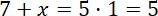Aby otrzymać wartość niewiadomej, należy wykonywać w odwrotnej kolejności działania odwrotne do podanych w wyrażeniu z szukaną liczbą. W równaniu najpierw dodano do niewiadomej liczbę 7, a potem podzielono wynik przez 5 (kreska ułamkowa zastępuje znak dzielenia), co dało liczbę 1, a więc szukaną wartość otrzymamy z powrotem, mnożąc obie strony przez 5, a następnie odejmując od nich po 7 (bo (7 + x) : 5 · 5 – 7 = 7 + x – 7 = x, czyli z lewej strony pozostanie tylko x).