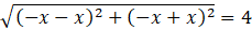 Określ niewiadomą x, wiedząc, że odległość między punktami A(x, -x), B(-x, -x) wynosi 4.
