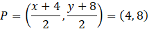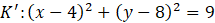 Podaj równanie okręgu, który jest symetryczny względem punktu P(2, 4) do okręgu o środku S(4, 8) i promieniu równym 3.