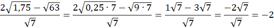 W liczniku wyłącz czynniki przed pierwiastki, tak aby otrzymać liczbę 7 pod pierwiastkami. Następnie zredukuj wyrazy podobne i skróć licznik z mianownikiem.