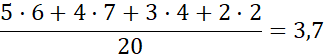 Wszystkie niezbędne informacje znajdują się na diagramie. Średnia arytmetyczna to iloraz wszystkich uzyskanych wyników do liczby możliwości.