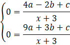 Do wykresu funkcji należą punkty (-2, 0) i (0, -2) i (3, 0), więc: