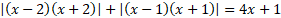 Zadanie należy zacząć od sprawdzania, dla jakich argumentów x zerują się wartości bezwzględne. Rozpatrz równanie w 5 przedziałach, określając znak dla każdego nawiasu. Po uzyskaniu wyniku sprawdź, czy dany x należy do dziedziny przedziału.