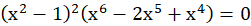 Sprowadzasz dane wyrażenie do postaci iloczynowej, która jednoznacznie określa pierwiastki danego wielomianu oraz ich krotności, a następnie je podajesz. Aby doprowadzić wyrażenie do postaci iloczynowej, w pierwszej kolejności wykorzystujesz wzór na różnicę kwadratów, aby rozbić jeden z nawiasów na czynniki, oraz wyłączasz z drugiego nawiasu najwyższą wspólną potęgę zmiennej. Następnie stosujesz wzór na kwadrat różnicy aby sprowadzić powstały trójmian kwadratowy do postaci iloczynowej. Analizujesz poszczególne człony postaci iloczynowej.