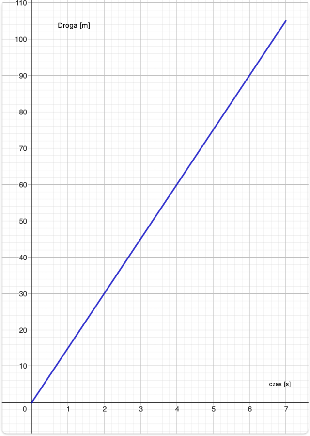 Obiekt w każdej sekundzie ruchu pokonuje 15 metrów.
