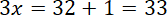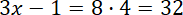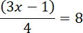 Aby otrzymać wartość niewiadomej, należy wykonywać w odwrotnej kolejności działania odwrotne do podanych w wyrażeniu z szukaną liczbą. W równaniu najpierw pomnożono niewiadomą przez 3, następnie odjęto od niej liczbę 1, a potem podzielono wynik przez 4 (kreska ułamkowa zastępuje znak dzielenia), co dało liczbę 8, a więc szukaną wartość otrzymamy z powrotem, mnożąc obie strony przez 4, następnie dodając do nich po 1, a wyniki dzieląc przez 3 (bo ((3x – 1) : 4 · 4 + 1) : 3 = ((3x –1) + 1) : 3 = 3x : 3 = x, czyli z lewej strony pozostanie tylko x).
