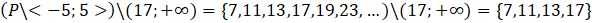 Ze zbioru liczb pierwszych odrzuć wszystkie liczby, które są większe lub równe –5 i mniejsze lub równe 5. Z tak otrzymanego zbioru, znowu odrzuć liczby, które są większe od 17. Pamiętaj, że liczba pierwsza to taka liczba naturalna, która ma dokładnie dwa dzielniki, siebie i liczbę 1. Na koniec policz, ile jest elementów w otrzymanym zbiorze.