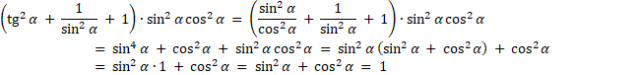 przed nawias i skorzystaj z jedynki trygonometrycznej. Ponownie skorzystaj z jedynki trygonometrycznej i oblicz wynik.