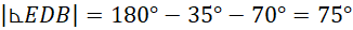 . Oblicz miarę kąta EDB z sumy kątów w trójkącie. Na koniec oblicz wartość