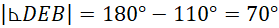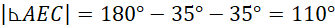 Zacznij od policzenia kąta AEC z sumy kątów w trójkącie. Policz miarę kąta DEB wiedząc, że razem z kątem AEC mają