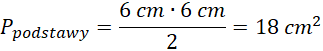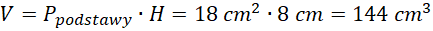 Zauważ, że podstawa graniastosłupa to trójkąt prostokątny równoramienny o przyprostokątnych długości 6 cm. Oblicz pole postawy. Wysokość prostopadłościanu wynosi 8 cm. Oblicz objętość ze wzoru: