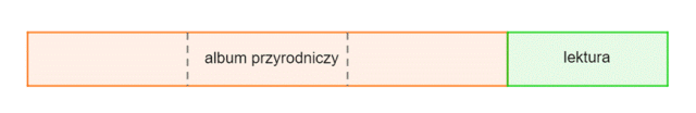 Zauważ, skoro album jest 3 razy droższy od lektury, to sumę cen tych produktów możemy zapisać jako sumę cen czterech lektur. Podzielmy teraz koszt zakupów przez 4 – wynik to wartość 1 lektury. Bez problemów obliczymy cenę albumu – koszt zakupu lektury należy pomnożyć przez 3. Na koniec pozostaje tylko policzenie różnicy między tymi cenami – odejmij od ceny albumu, cenę lektury.