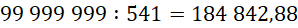 Podziel największą liczbę ośmiocyfrową przez 541. Wynik zaokrąglij w dół (obetnij część ułamkową). Pomnóż 541 przez otrzymany wynik, aby znaleźć największą liczbę ośmiocyfrową podzielną przez 541.
