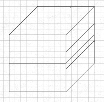 2 klocki o najmniejszej wysokości muszą znajdować się w środku, ponieważ sama górna ściana zajmuje 100 cm2, więc wtedy widoczna biała ściana u góry byłaby prawie tak duża, jak suma pól, której szukamy.