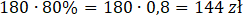 Pomnóż cenę początkową towaru przez procent ceny początkowej, jaki stanowić będzie cena po obniżce, czyli 80%. 1% oznacza