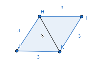 Narysuj romb o boku 3 cm i przekątnej 3 cm, a następnie oblicz jego kąty.