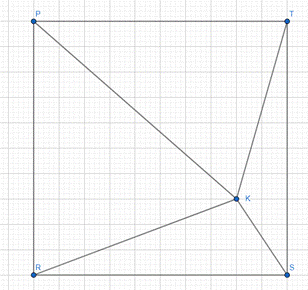 Zauważ, że musimy policzyć wysokości podanych trójkątów. Ich suma jest dłuższa niż bok kwadratu, zatem muszą to być trójkąty obok siebie.