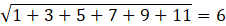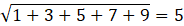 Pierwiastek pierwiastków z sumy kolejnych liczb nieparzystych wynosi tyle, ile jest składników w sumie.