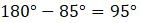 Miara trzeciego kąta: 75°; kąty przyległe: 95°, 160° i 105°.