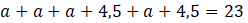 Oblicz długości boków prostokąta o obwodzie 23 cm, w którym a jeden z boków jest o 4,5 cm dłuższy od drugiego.