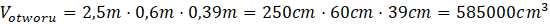 Oblicz, ile cegieł o wymiarze 25 cm x 12 cm x 6,5 cm potrzeba do wypełnienia otworu o kształcie prostopadłościanu o wymiarach 2,5 m x 0,6 m x 0,39 m.