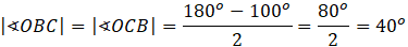Na tej podstawie oblicz miarę kąta OBC. Skorzystaj z tego, że miary kątów pry podstawie w trójkącie równoramienny są równe.