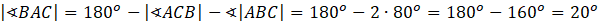 Oblicz miarę kąta BAC. Skorzystaj z tego, że suma miar kątów w trójkącie wynosi