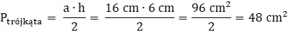 Takie same pola mają kwadrat i trapez, dla których pole zostało policzone z podstawowego wzoru dla tych figur.