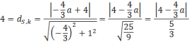 i okrąg w I ćwiartce, więc "y" środka okręgu wynosi 4. Następnie znając odległość środka okręgu od prostej wyznacz „x” środka. Kolejno oblicz punkt styczności z prostą. Powstaje nam z 4 punktów deltoid, którego pole to dwukrotność trójkąta tworzonego przez dłuższą przekątną i obojętnie, który z tych 2 wierzchołków.