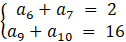 Najpierw zapisujemy podane warunki jako dwa równania w postaci układu równania i rozwiązujemy go. Następnie obliczamy sumę dziewięciu początkowych wyrazów, korzystając ze wzoru: