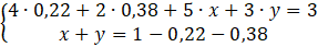 Najpierw zapisz wzór na średnią ważoną, aby to zrobić należy każdą wartość ze zbioru danych pomnożyć przez jej wagę, następnie zsumować wszystkie przemnożone wartości i podzielić przez sumę wag. Dopisz jeszcze równanie opisujące, że suma dwóch niewiadomych z wcześniejszego równania jest równa