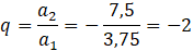 Oblicz iloraz ciągu geometrycznego. Podziel wartość drugiego wyrazu przez pierwszy.