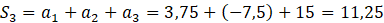 Oblicz sumę trzech początkowych wyrazów ciągu geometrycznego.