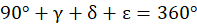 Pamiętaj, że w trójkącie prostokątnym suma kątów ostrych wynosi 90°. Oblicz z sumy kątów trójkąta ACM miarę kąta ε. Z sumy miar kątów dla trójkąta BCN oblicz miarę kąta δ. Wiedząc, że miara kątów w czworokącie wynosi 360° oblicz miarę kąta γ.