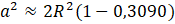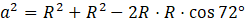 Pozostaje jeszcze ostrosłup o podstawie pięciokąta foremnego. Z wierzchołków pięciokąta do jego środka można poprowadzić odcinki (które to właśnie będą promieniem okręgu opisanego na pięciokącie) i utworzyć w ten sposób pięć trójkątów przystających do siebie (takich samych). Będą to trójkąty równoramienne o podstawie w boku tego pięciokąta. Kąt naprzeciwko podstawy będzie piątą częścią kąta pełnego, czyli jego miara będzie wynosiła 360° : 5 = 72°. Z twierdzenia cosinusów: