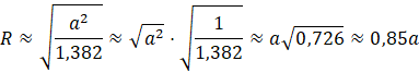 Więc promień okręgu opisanego na pięciokącie jest mniejszy od jego boku, czyli da się w sposób opisany w zadaniu skonstruować ostrosłup prawidłowy.