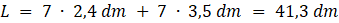 Oblicz obwód ostrosłupa prawidłowego siedmiokątnego, którego krawędź podstawy ma długość 2,4 dm, a długość krawędzi bocznej wynosi 35 cm.
