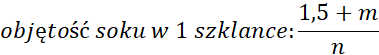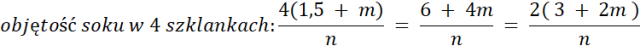 Na podstawie podanych informacji ułóż wyrażenie algebraiczne obrazujące objętość soku w czterech szklankach.