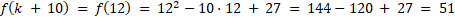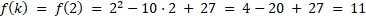Wyznacz największą wartość funkcji f(x) = x2 – 10x + 27, wiedząc, że dla argumentu x = k + 3przyjmuje najmniejszą wartość w przedziale