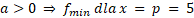 Zauważmy, że funkcja przyjmuje najmniejszą wartość dla argumentu p, który wyliczamy. Następnie określamy wartość m oraz wyznaczamy wartości funkcji dla wskazanych argumentów.