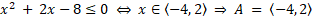 Wiedząc, że zbiór A jest zbiorem elementów, będących rozwiązaniami nierówności x2 + 2x – 8 ≤ 0 oraz zbiór B jest zbiorem elementów, będących rozwiązaniami nierówności |x| ≤ 3, wyznacz ich sumę (